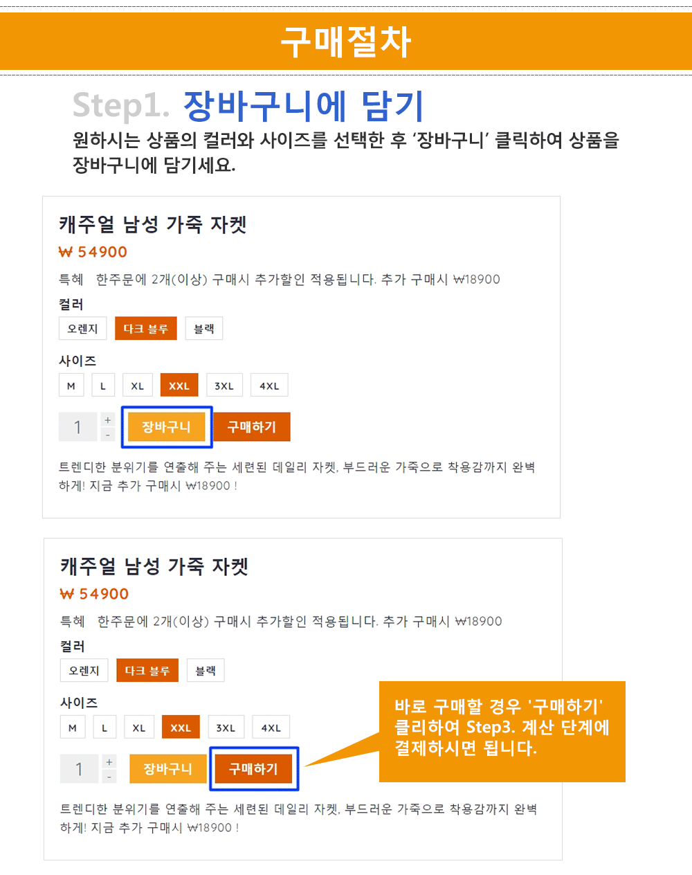 존경하는 고객님 , 상품 구매하실 때 아래 구매 절차 안내를 참조하시기 바랍니다 . 다른 문의사항이나 우려사항 있으시면 언제든 온라인 고객센터에 문의하거나 메일로 연락해 주십시오 ~